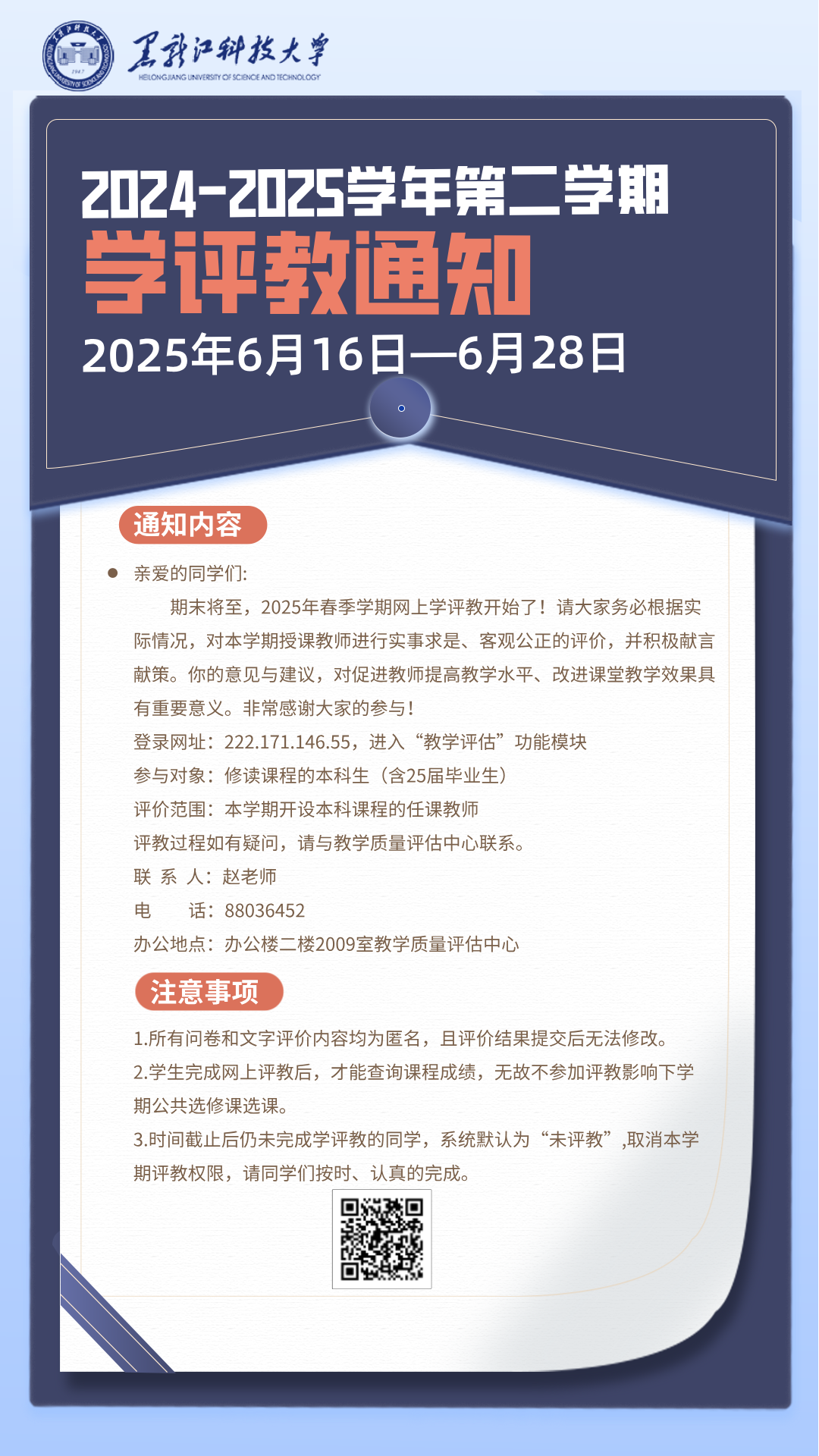 地址:哈尔滨市松北区浦源路2468号 邮编:150022电话:0451-88036452邮箱:pingguzhongxin@usth.edu.cn版权所有:黑龙江科技大学©2024