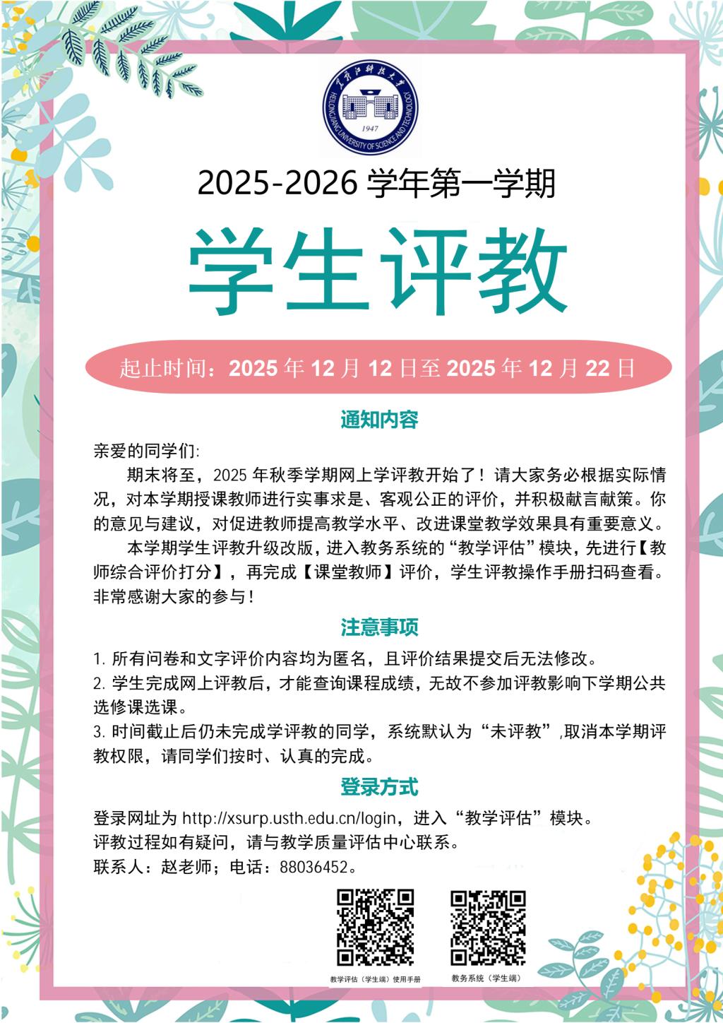 上一篇:关于报送审核评估整改进展情况的通知 下一篇:关于报送2025年度教师教学质量考核结果、教学效果考核实施细则和教学单位督导工作总结的通知